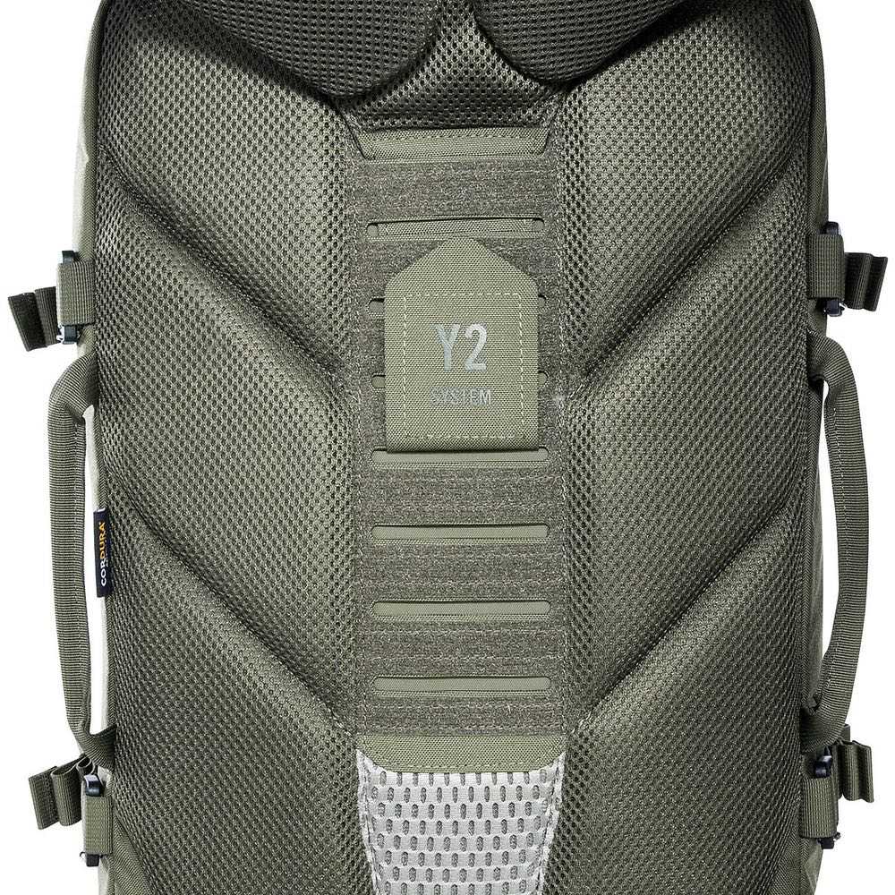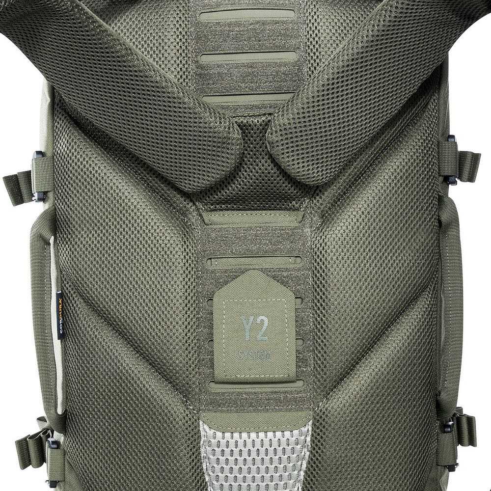 Das ergonomische Y2‑Tragesystem ist gepolstert, individuell einstellbar und ermöglicht hohen Komfort auch bei längeren Touren oder schwerer Beladung. Schulterträger und Bauchgurt lassen sich vollständig abnehmen – ideal, wenn der Rucksack in Fahrzeugen verstaut oder platzsparend transportiert werden muss. Zusätzlich verfügt der Rucksack über drei robuste Handgriffe sowie eine Trinksystemvorbereitung.
